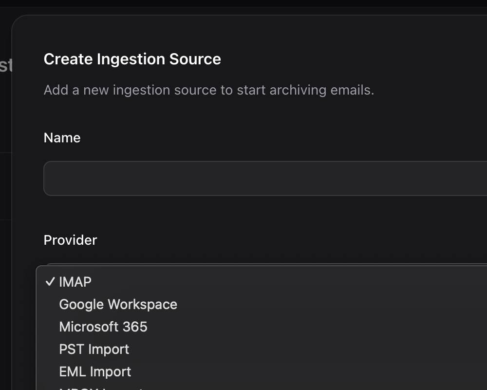 Connect your Google Workspace, Microsoft 365, or any IMAP server. Import PST, EML, and MBOX files. Archive all your email in one place.