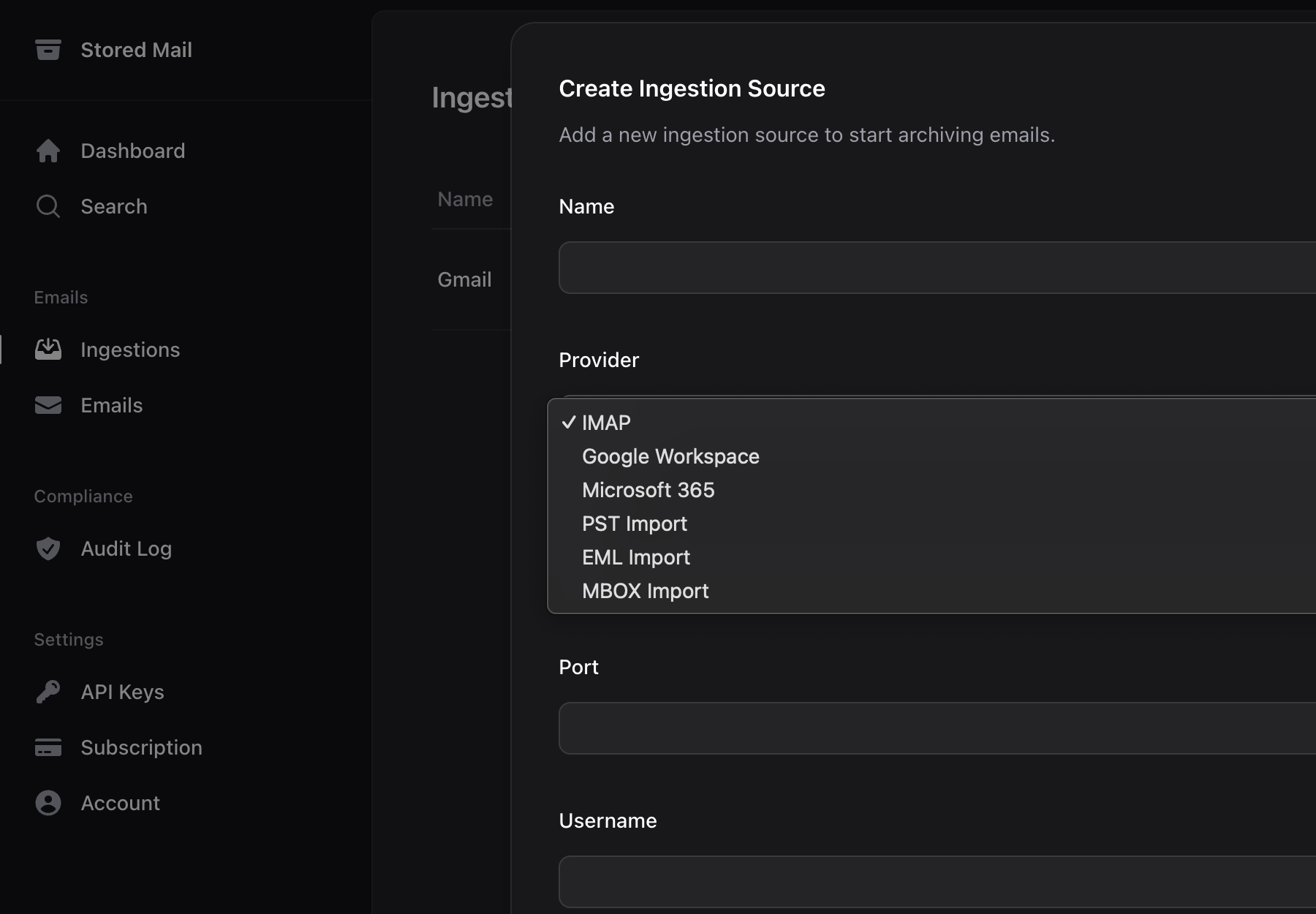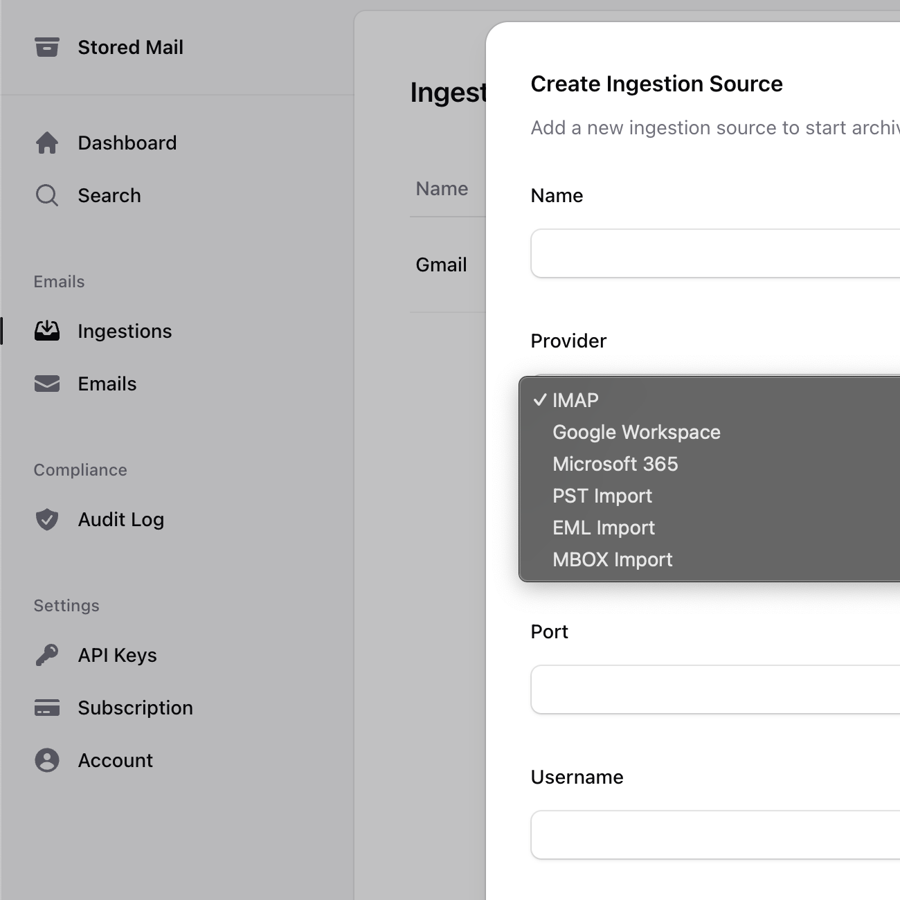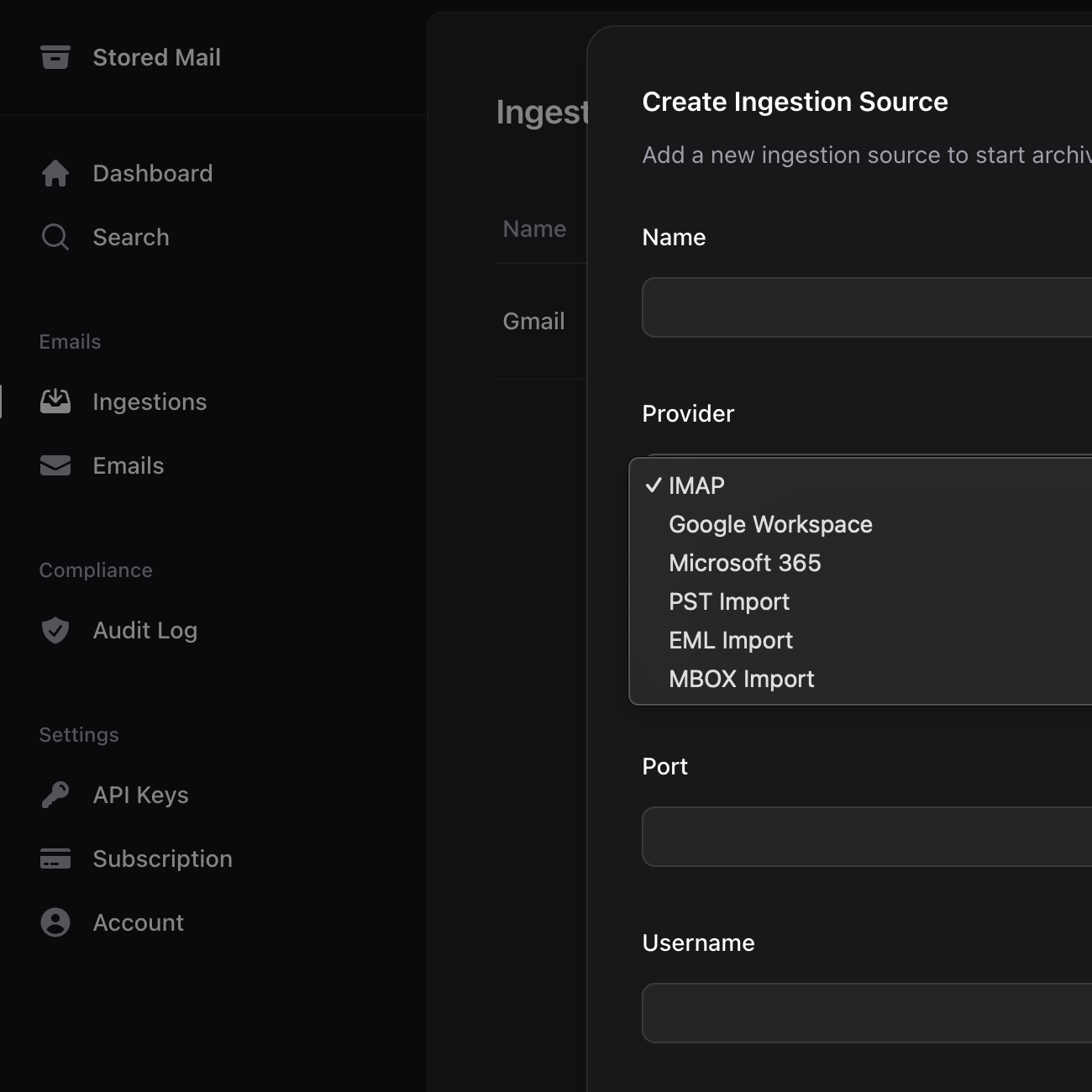 Set up Stored Mail in minutes. Connect your providers, import your archives, and keep everything searchable and secure.
