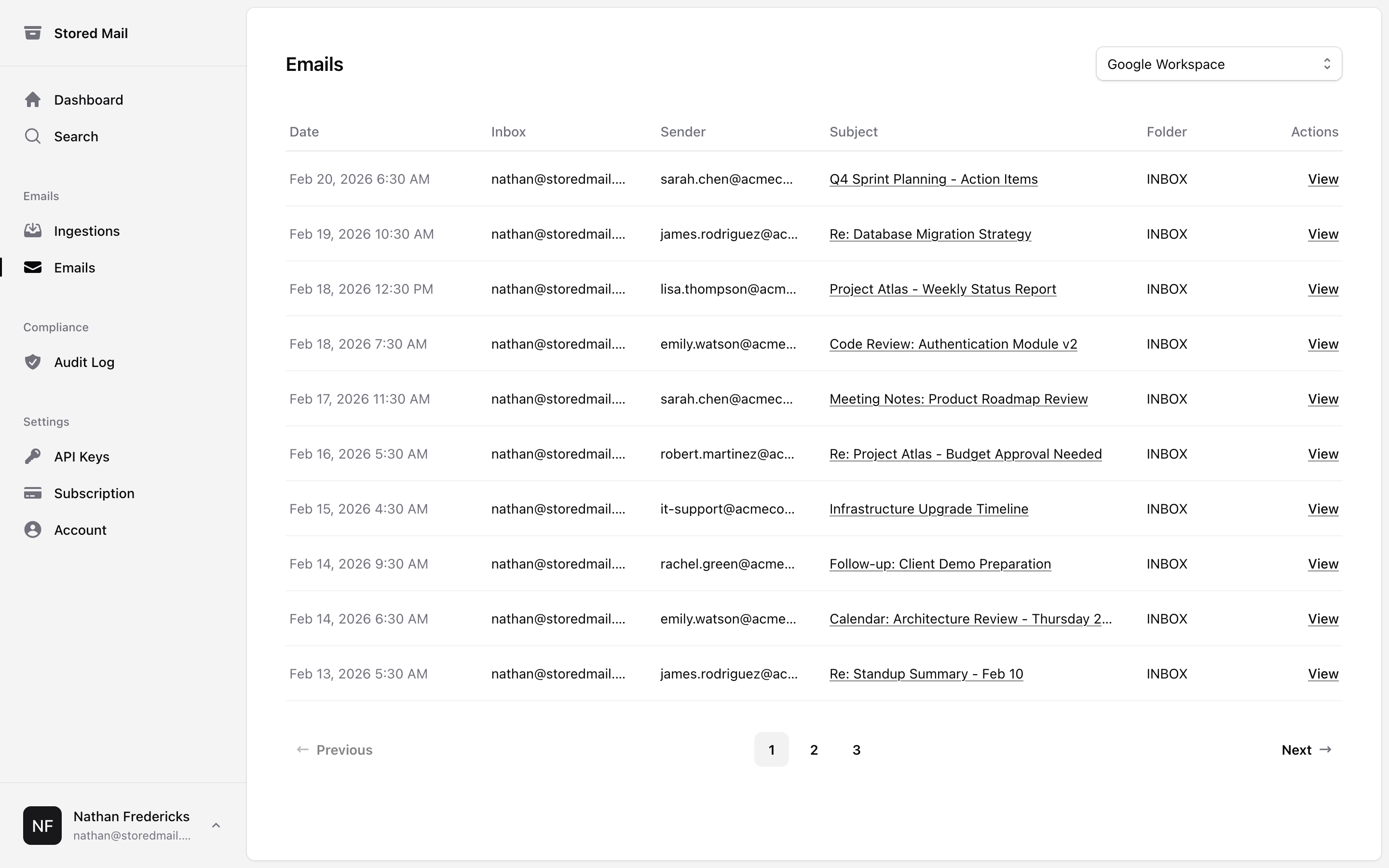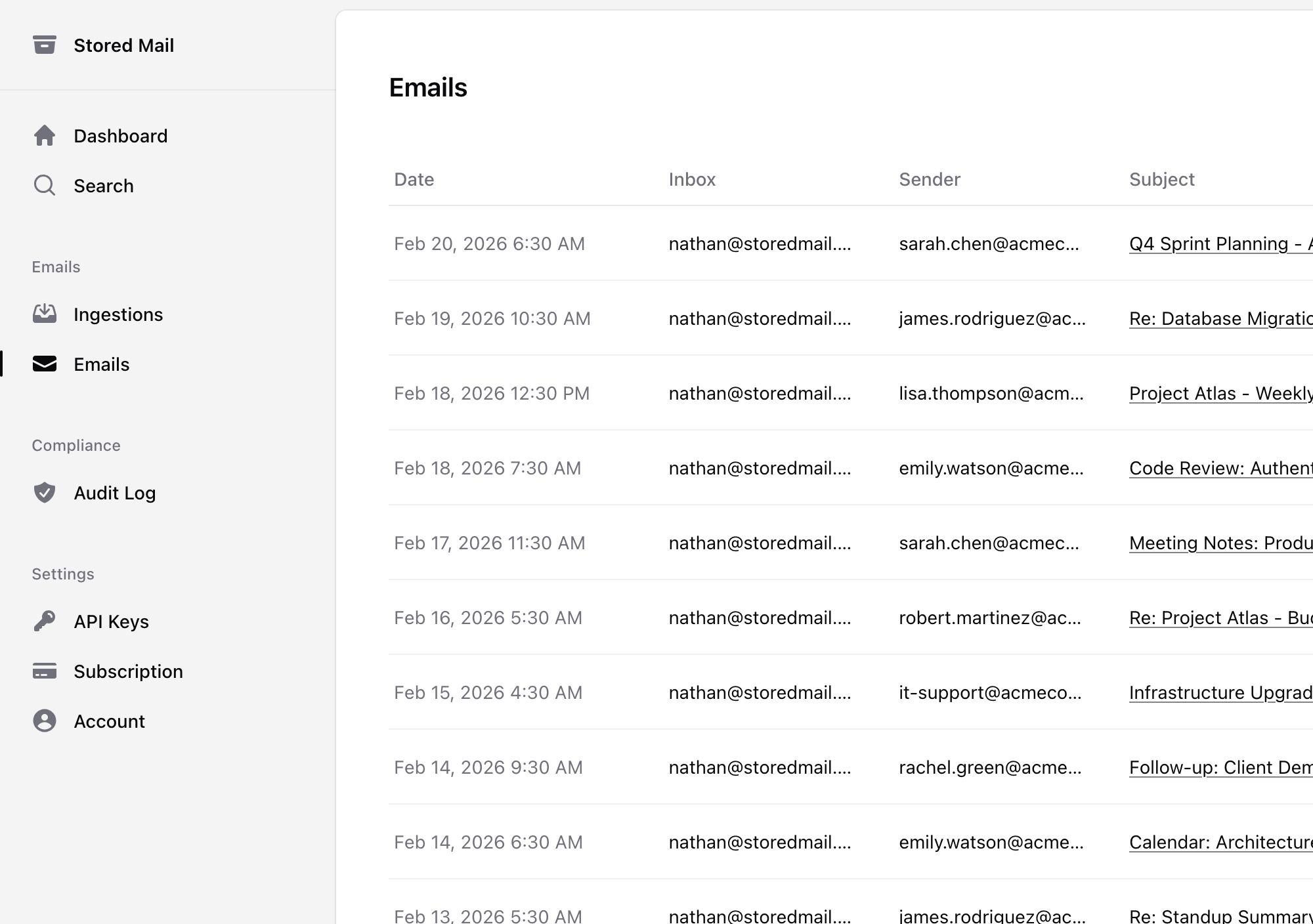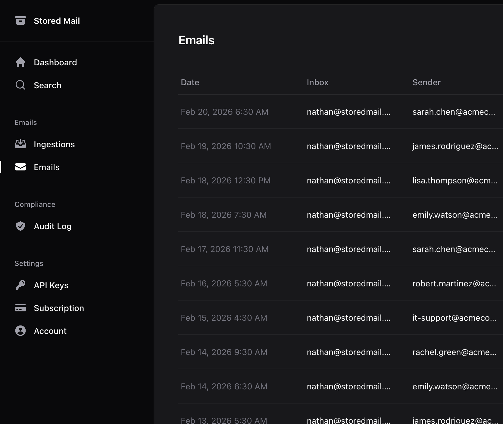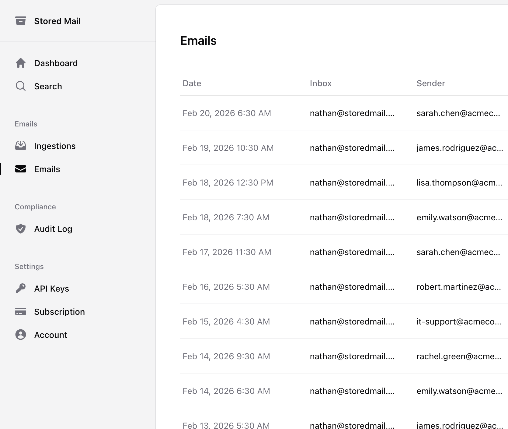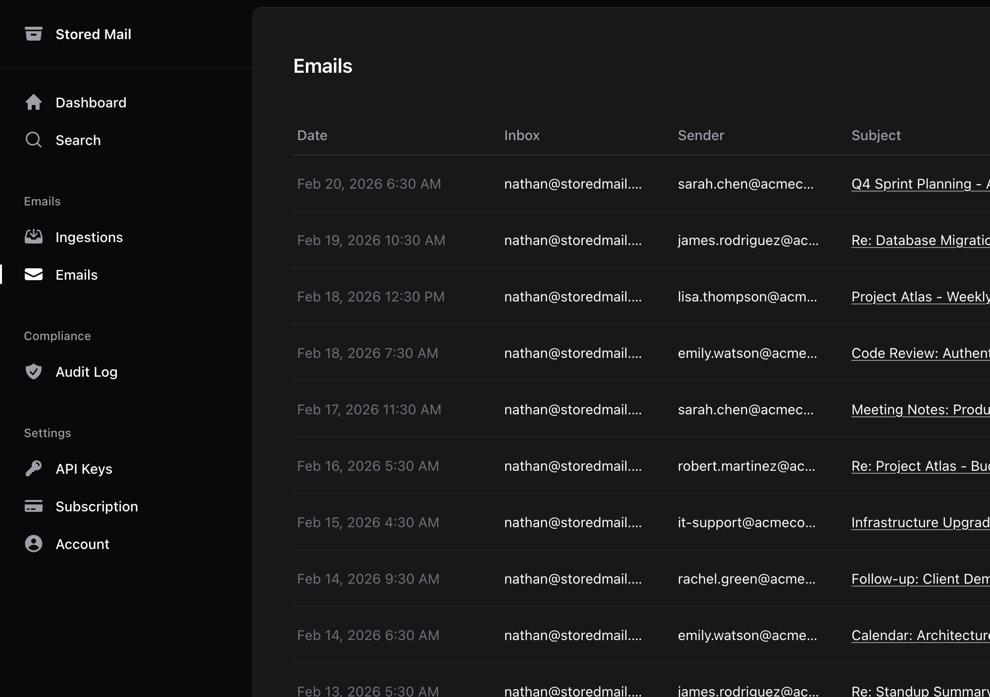 From ingestion to encryption, Stored Mail gives you full control over your email data.