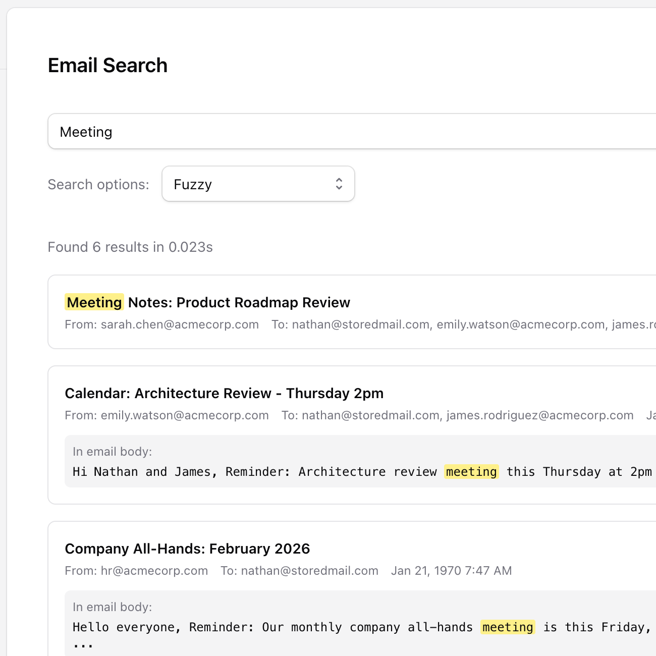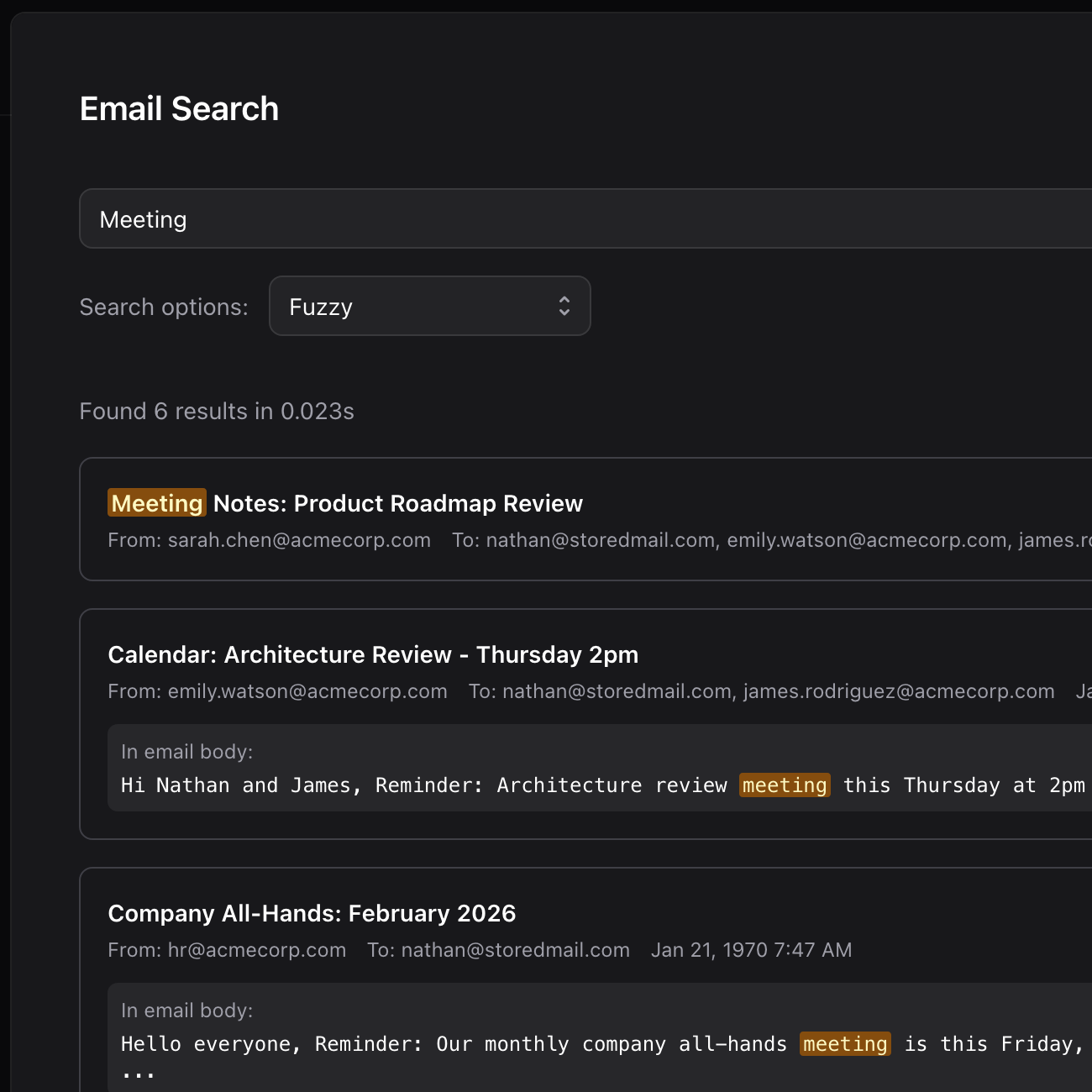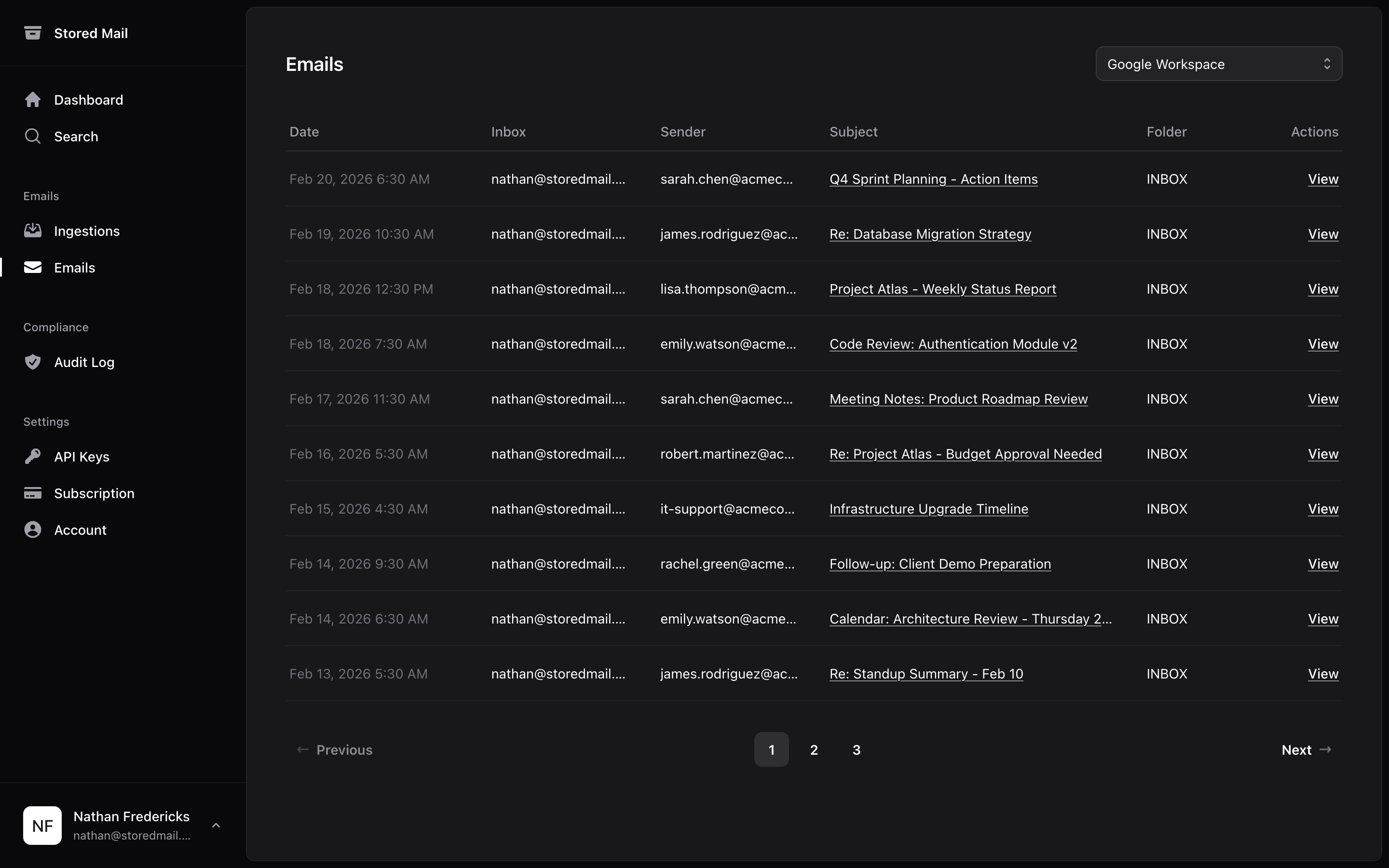 We had years of email scattered across Google Workspace, Microsoft 365, and a bunch of PST files nobody could open. Stored Mail pulled it all into one archive and now anyone on the team can search across everything in seconds.